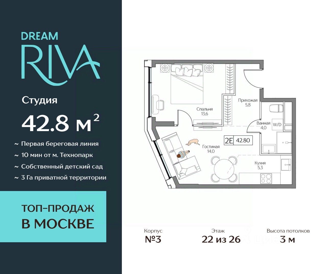 - Первая линия Москвы-реки с открытыми видами на воду и город;