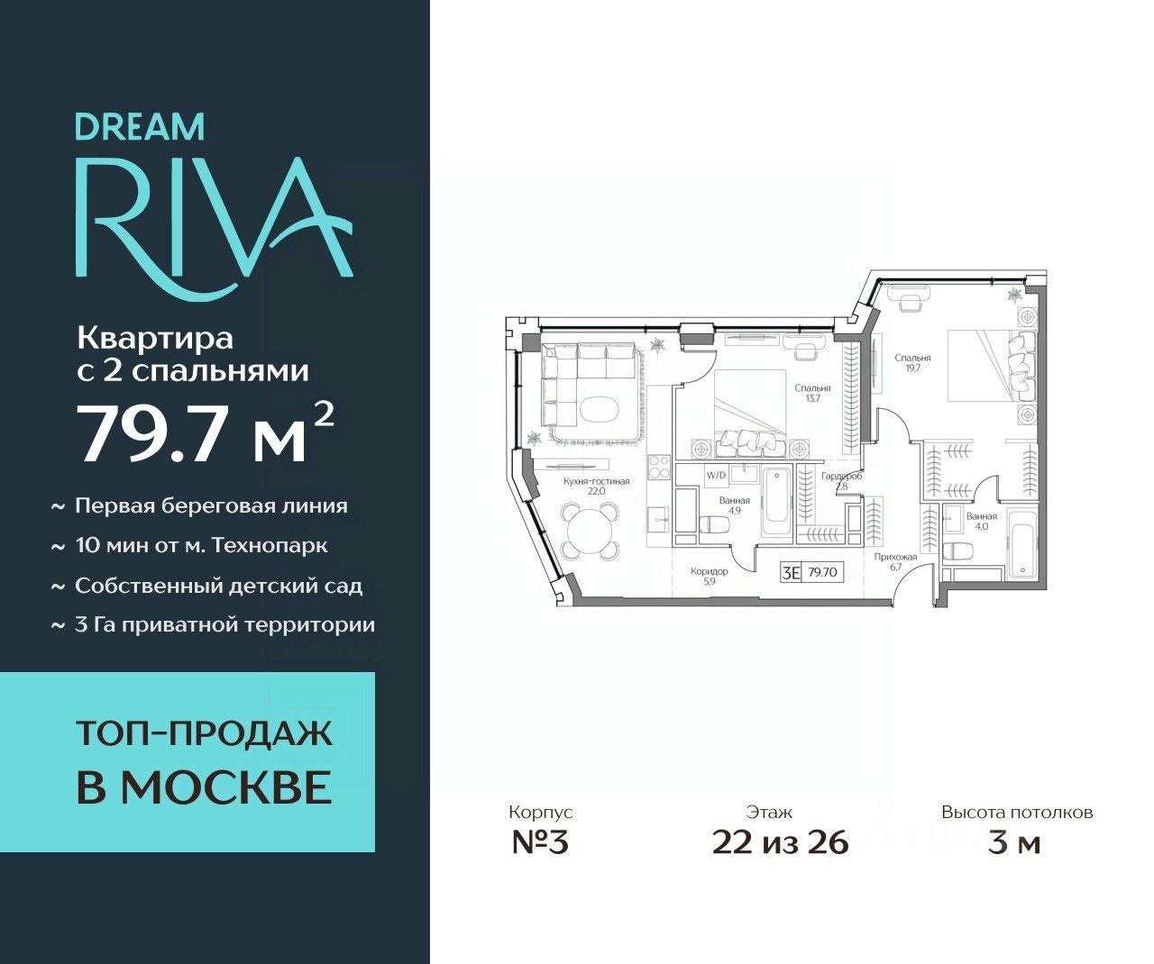Общая площадь: 79.7 кв.м.