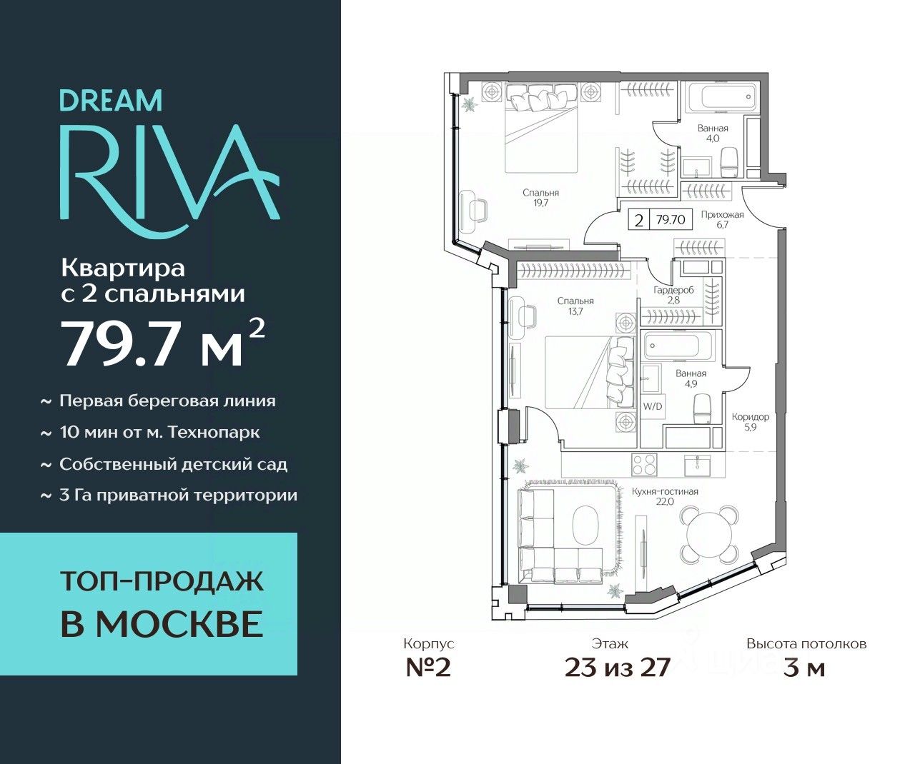 - Первая линия Москвы-реки с открытыми видами на воду и город;