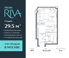 Продаётся Студия на 15 этаже 24-этажного дома (1 корпус).
