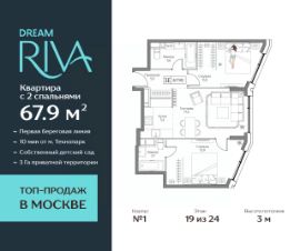 Продаётся Квартира с 2 спальнями квартира на 19 этаже 24-этажного дома (1 корпус).