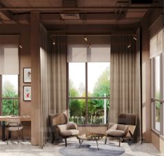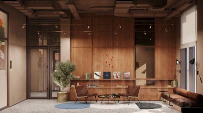Современное лобби: каминный зал, библиотека, коворкинг, фитнес и детский клуб