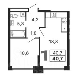 -Общая площадь: 40,7 м²