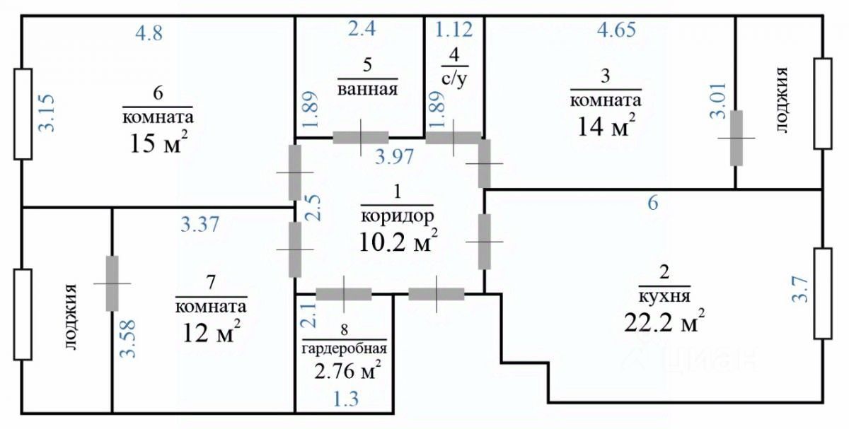 Две просторные лоджии, которые можно оборудовать под кабинеты.