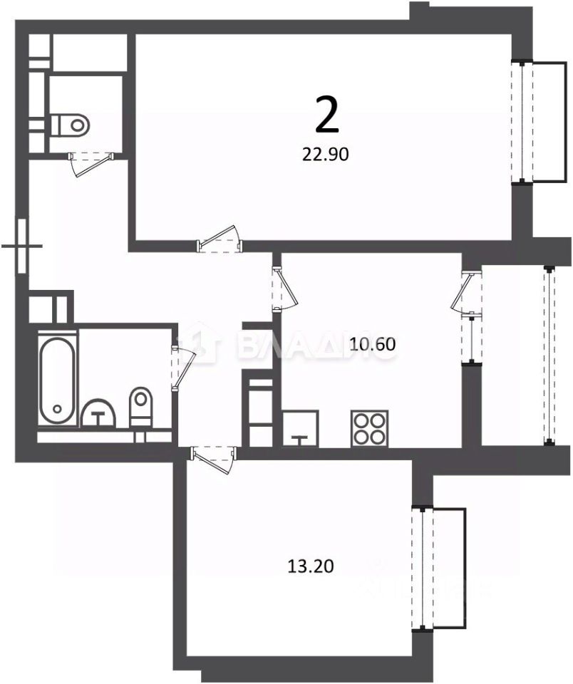 В квартире две полноценные изолированные комнаты, что позволяет удобно зонировать пространство.