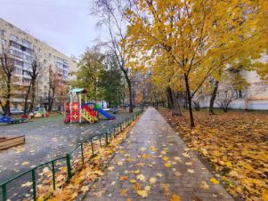 Кирпичный дом 1965г. Зеленый тихий двор с детской и спортивной площадкой. Парковка на территории двора за шлагбаумом.