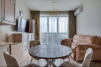 В квартире: просторная спальня, кухня-гостиная, большая гардеробная на входе и совмещенный