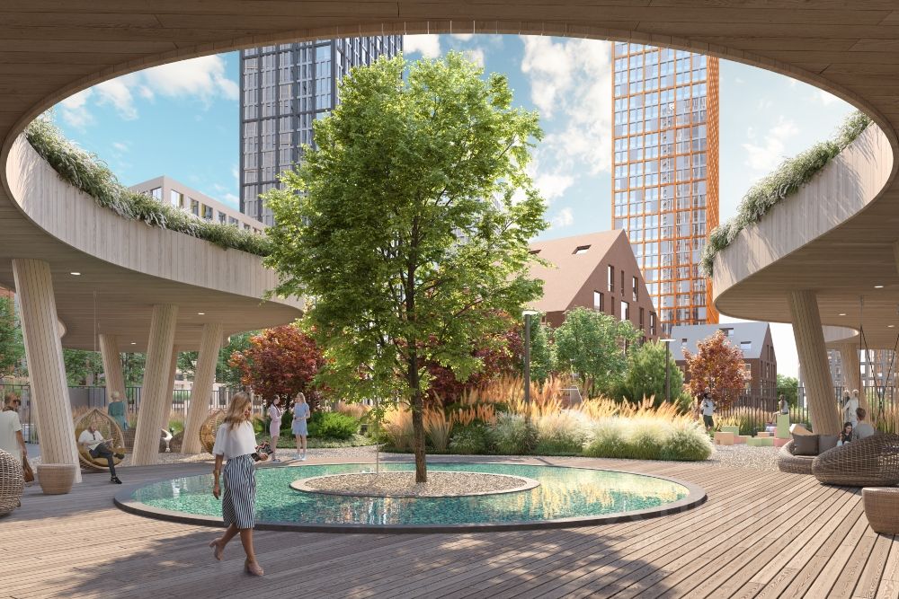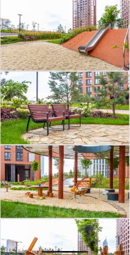 Комплекс имеет собственную инфраструктуру: спортивные площадки, студии, SPA и медицинские учреждения, кафе и магазины. Предусмотрен выход на благоустроенную набережную Москва-реки.