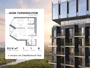 - Общая площадь - 52.58 кв.м.