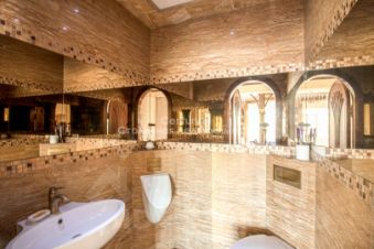 Все материалы экологичные и высококачественные по индивидуальному заказу: подогреваемые полы из итальянского мрамора и натурального камня, арочные двери из индонезийского тика, африканское дерево зебрано.