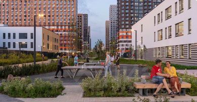 В проекте 54 жилых корпуса, три школы, семь детских садов, поликлиника. В районе есть все условия для комфортной жизни: торговые центры, школы, детские сады, поликлиники и спортивные центры. Рядом находятся усадьба Люблино, скверы и парки. Различные магазины, кафе и другие сервисы на первых этажах, а на подземном этаже паркинг с удобной навигацией. В зелёных дворах без автомобилей детские площадки и места для отдыха.