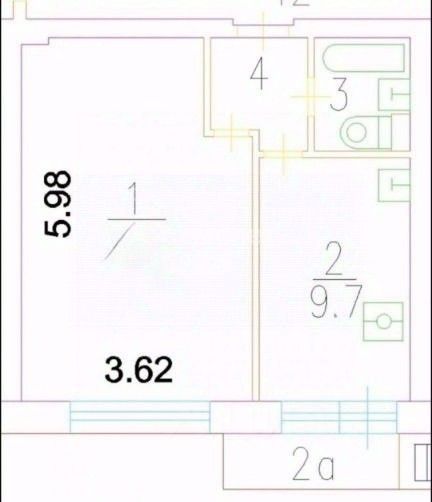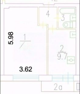 Общая площадь 35,5м², жилая 19,7м², кухня 9,8м².