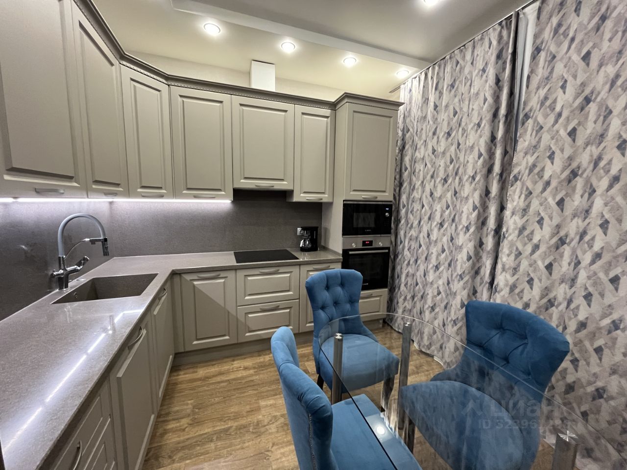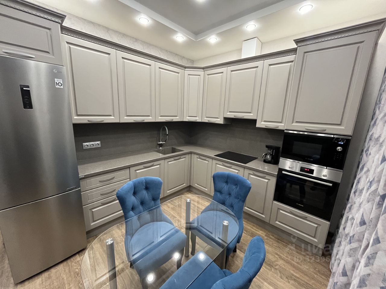 В квартире выполнен качественный евро ремонт. Все продумано до мелочей. Квартира эксплуатировалось очень мало, все в идеальном состоянии. По планировке большая зонированная студия. Кухня - столовая с дизайнерским кухонным гарнитуром Мария со всей необходимой встраиваемой бытовой техникой Bosch (микроволновая печь, духовой шкаф, варочная панель, вытяжка, посудомоечная машина, холодильник), столешница и фартук из искусственного камня, установлена система фильтрации воды и измельчитель. Из кухни выход на утепленную лоджию, окна все заменены на 3-х камерные стеклопакеты, теплые полы, что позволяет разместить на лоджии кабинет с рабочим местом или уютную зону отдыха. Гостиная с тв зоной, ниша для двуспальной кровати, шкаф купе с системой хранения. Установлен кондиционер, проведен интернет и телевидение. Отдельная хозяйственная комната. Просторный санузел в керамограните с душевой кабиной. Сантехника Grohe, теплые полы Electrolux, установлена система аква-стоп с датчиками протечки, стиральная и сушильная машина LG. Мебель и техника входит в стоимость. Окна выходят на тихий внутренний двор. В доме детский сад, салон красоты, студии фитнеса, напротив школа, магазины, развитая инфраструктура района. Свободная продажа, один взрослый собственник!