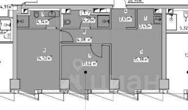Предлагается к покупке 2-х комнатная квартира (формат 3Евро), общей площадью 60.57 м2, с предчистовой отделкой (отделка MR Base) на видовом 23-м этаже .