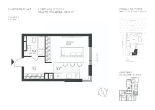 Продается студия, 35 м²