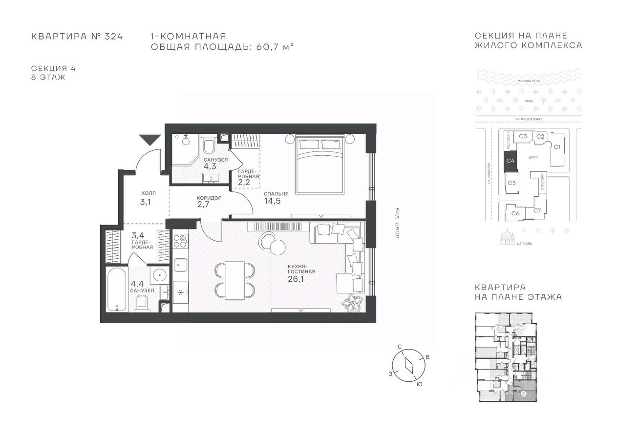 Общая площадь60,7 м²