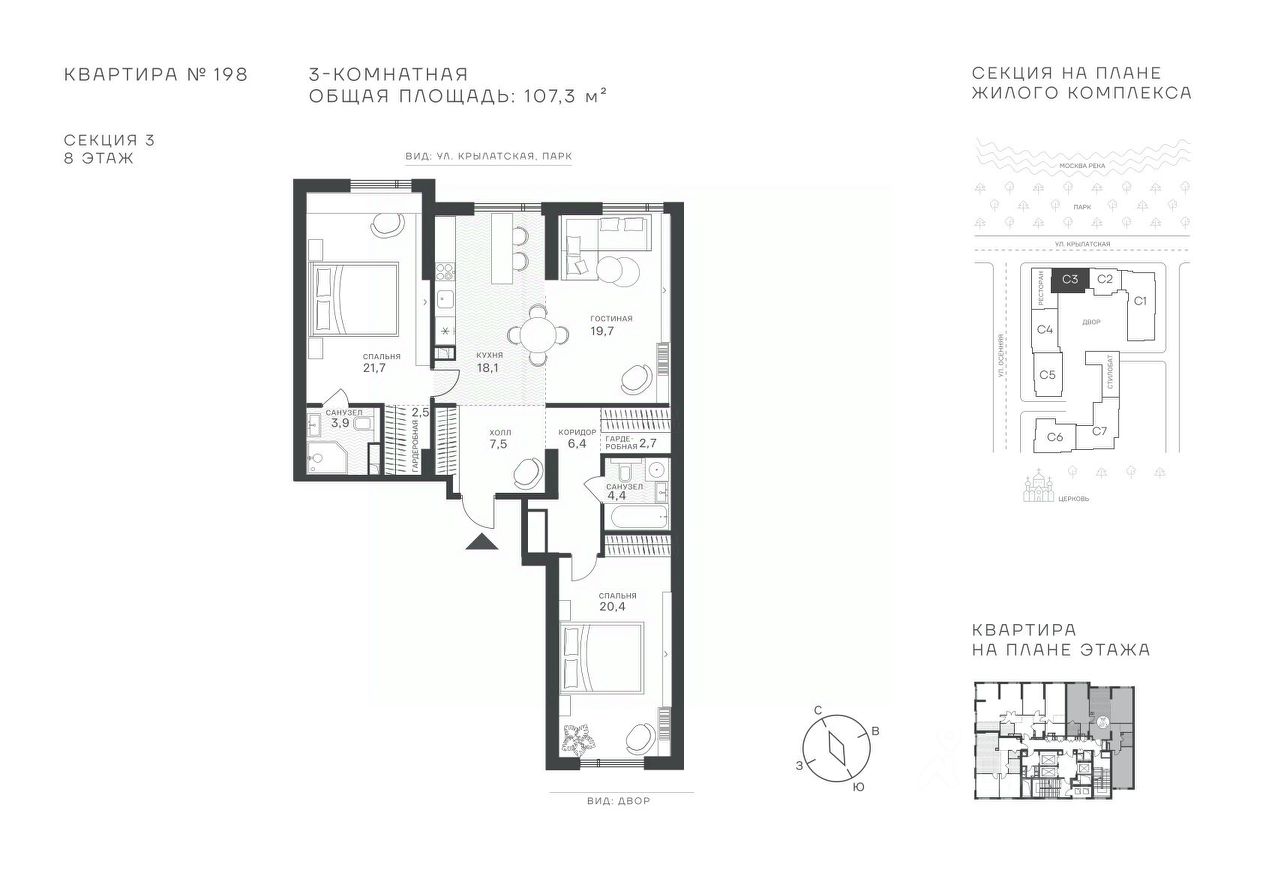 Успейте стать частью уникального проекта премиум-класса на западе Москвы! В продаже квартиры: 1-комнатные от 28,1 м²; 2-комнатные от 61,2 м²; 3-комнатные от 86,6 м²; 4-комнатные от 110,7 м². Первый взнос от 30%! Рассрочка на 2 года без переплат! Крылатское 33 это премиальный жилой комплекс от специализированного застройщика ООО "Сияние". Самый высокий небоскрёб в районе, достигающий отметки в 150 метров и малоэтажный клубный формат высотой от 42 метров на приватной территории площадью 1,4 га. Великолепные виды на излучину Москва-реки, Живописный мост и урбанистический облик города. Эксклюзивные форматы квартир с панорамным остеклением и патио-террасами. Двухуровневый паркинг на 271м/м, премиальные входные группы, ресторан высокой кухни, детский сад и эко-маркет на территории комплекса. Эксклюзивные преимущества: доступ к wellness-центру, коворкингу и клубной гостиной только для резидентов. Над проектом работали именитые российские архитектурные бюро: архитектор проекта бюро "Остоженка", планировочные решения от бюро Александры Федоровой. Расположение Пешком: 5-7 минут - до парка Звезд, Крылатского парка и набережной Москвы-реки; 15 минут - до метро Крылатское Арбатско-Покровской линии; 15 минут - до пристани Крылатская. На автомобиле: 10 минут - до Третьего транспортного кольца; 15 минут - до Садового кольца и Москва- Сити; 20-30 минут - до Аэропорта Внуково; 30-40 минут - до Аэропорта Шереметьево. В 300 метрах от комплекса - удобная транспортная развязка с проспектом Маршала Жукова, обеспечивающая легкий доступ к ключевым магистралям. Благоустройство: Просторная общественная гостиная; Коворкинг с кофе-баром, комфортные переговорные зоны с быстрым wi-fi, зарядными устройствами и библиотекой; Пространство friends lab для организации клубных мероприятий; Wellness-центр с фитнес-залом и массажными кабинетами; Ресторан высокой кухни; Частный детский сад; Детское кафе; Современный детский playhub; Спортивные площадки; Гипоаллергенный сад, безопасные водные пространства, декоративные пруды и сухие фонтаны; Высокоскоростные бесшумные лифты; Разделение зон для резидентов квартала и сервисного обслуживания. Окружение: - парки: Крылатские холмы, природно-исторический парк Москворецкий, Серебряный Бор; - учебные заведения: 5 образовательных комплексов, в которые входят 15 детских садов и 12 школьных корпусов. В удобной транспортной доступности гимназия им. Е. М. Примакова и международный лицей The International School of Moscow; - уникальные спортивные сооружения: гребной канал "Крылатское", легендарный велотрек "Крылатское", "Лата Трэк" для горнолыжников и сноубордистов, ледовый дворец "Крылатское"; - единственный в Москве парк развлечений под открытым небом, включающий более 70 вариантов досуга для любого возраста и времени года. Срок сдачи проекта: 2 квартал 2027 года. Финансирование и эскроу-счет обеспечены банком МКБ.
