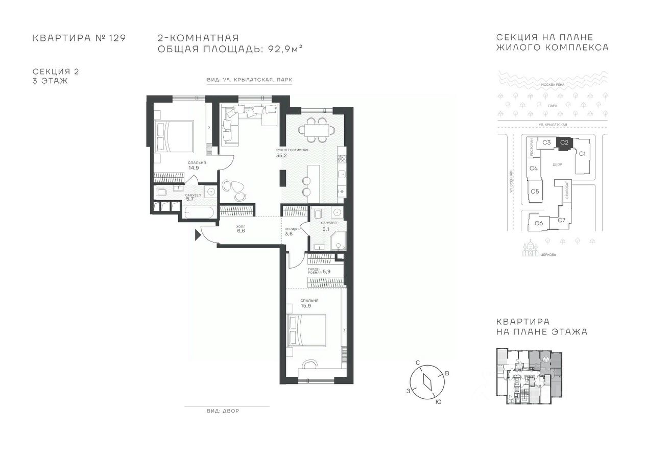 Успейте стать частью уникального проекта премиум-класса на западе Москвы! В продаже квартиры: 1-комнатные от 28,1 м²; 2-комнатные от 61,2 м²; 3-комнатные от 86,6 м²; 4-комнатные от 110,7 м². Первый взнос от 30%! Рассрочка на 2 года без переплат! Крылатское 33 это премиальный жилой комплекс от специализированного застройщика ООО "Сияние". Самый высокий небоскрёб в районе, достигающий отметки в 150 метров и малоэтажный клубный формат высотой от 42 метров на приватной территории площадью 1,4 га. Великолепные виды на излучину Москва-реки, Живописный мост и урбанистический облик города. Эксклюзивные форматы квартир с панорамным остеклением и патио-террасами. Двухуровневый паркинг на 271м/м, премиальные входные группы, ресторан высокой кухни, детский сад и эко-маркет на территории комплекса. Эксклюзивные преимущества: доступ к wellness-центру, коворкингу и клубной гостиной только для резидентов. Над проектом работали именитые российские архитектурные бюро: архитектор проекта бюро "Остоженка", планировочные решения от бюро Александры Федоровой. Расположение Пешком: 5-7 минут - до парка Звезд, Крылатского парка и набережной Москвы-реки; 15 минут - до метро Крылатское Арбатско-Покровской линии; 15 минут - до пристани Крылатская. На автомобиле: 10 минут - до Третьего транспортного кольца; 15 минут - до Садового кольца и Москва- Сити; 20-30 минут - до Аэропорта Внуково; 30-40 минут - до Аэропорта Шереметьево. В 300 метрах от комплекса - удобная транспортная развязка с проспектом Маршала Жукова, обеспечивающая легкий доступ к ключевым магистралям. Благоустройство: Просторная общественная гостиная; Коворкинг с кофе-баром, комфортные переговорные зоны с быстрым wi-fi, зарядными устройствами и библиотекой; Пространство friends lab для организации клубных мероприятий; Wellness-центр с фитнес-залом и массажными кабинетами; Ресторан высокой кухни; Частный детский сад; Детское кафе; Современный детский playhub; Спортивные площадки; Гипоаллергенный сад, безопасные водные пространства, декоративные пруды и сухие фонтаны; Высокоскоростные бесшумные лифты; Разделение зон для резидентов квартала и сервисного обслуживания. Окружение: - парки: Крылатские холмы, природно-исторический парк Москворецкий, Серебряный Бор; - учебные заведения: 5 образовательных комплексов, в которые входят 15 детских садов и 12 школьных корпусов. В удобной транспортной доступности гимназия им. Е. М. Примакова и международный лицей The International School of Moscow; - уникальные спортивные сооружения: гребной канал "Крылатское", легендарный велотрек "Крылатское", "Лата Трэк" для горнолыжников и сноубордистов, ледовый дворец "Крылатское"; - единственный в Москве парк развлечений под открытым небом, включающий более 70 вариантов досуга для любого возраста и времени года. Срок сдачи проекта: 2 квартал 2027 года. Финансирование и эскроу-счет обеспечены банком МКБ.