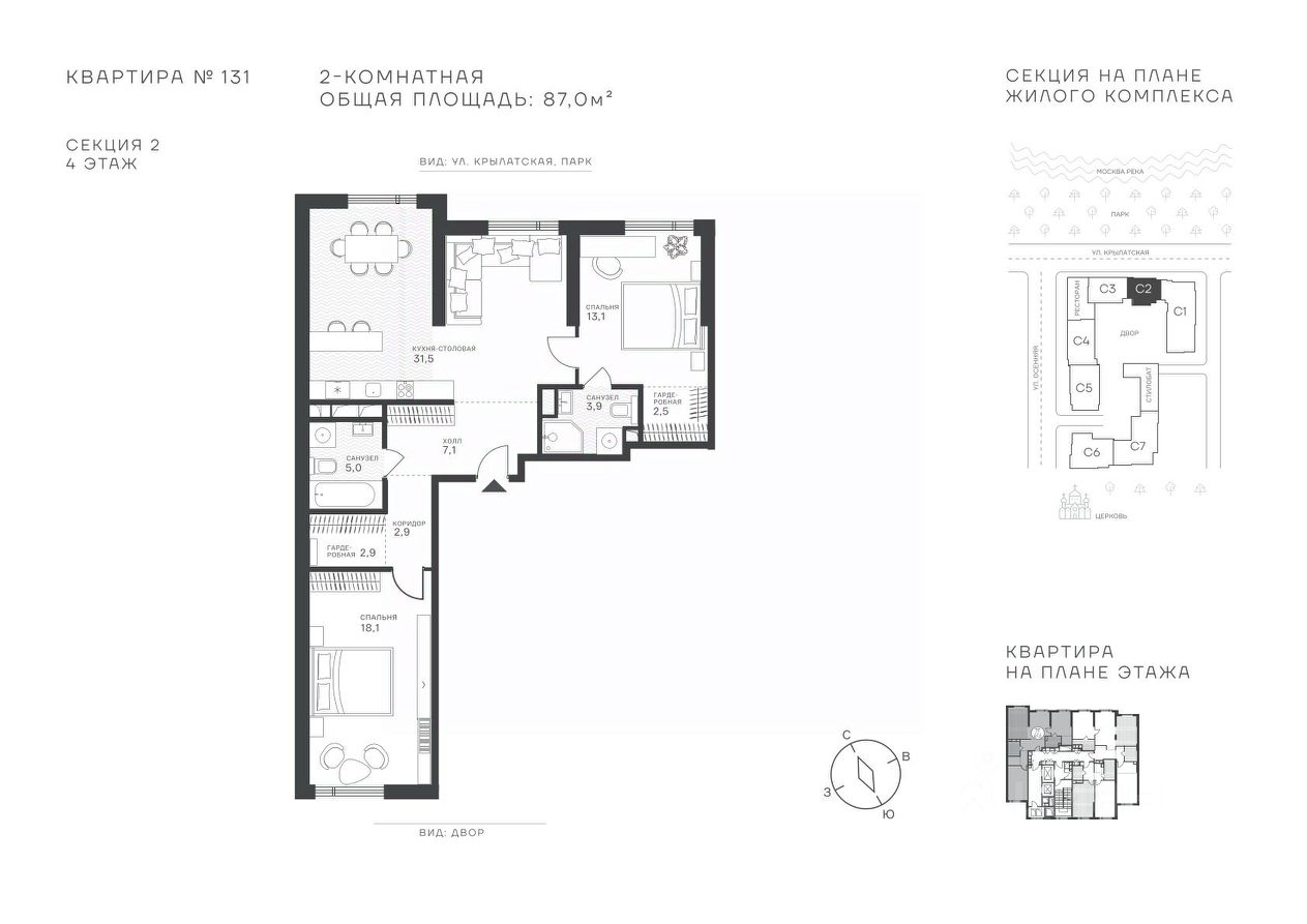 Успейте стать частью уникального проекта премиум-класса на западе Москвы! В продаже квартиры: 1-комнатные от 28,1 м²; 2-комнатные от 61,2 м²; 3-комнатные от 86,6 м²; 4-комнатные от 110,7 м². Первый взнос от 30%! Рассрочка на 2 года без переплат! Крылатское 33 это премиальный жилой комплекс от специализированного застройщика ООО "Сияние". Самый высокий небоскрёб в районе, достигающий отметки в 150 метров и малоэтажный клубный формат высотой от 42 метров на приватной территории площадью 1,4 га. Великолепные виды на излучину Москва-реки, Живописный мост и урбанистический облик города. Эксклюзивные форматы квартир с панорамным остеклением и патио-террасами. Двухуровневый паркинг на 271м/м, премиальные входные группы, ресторан высокой кухни, детский сад и эко-маркет на территории комплекса. Эксклюзивные преимущества: доступ к wellness-центру, коворкингу и клубной гостиной только для резидентов. Над проектом работали именитые российские архитектурные бюро: архитектор проекта бюро "Остоженка", планировочные решения от бюро Александры Федоровой. Расположение Пешком: 5-7 минут - до парка Звезд, Крылатского парка и набережной Москвы-реки; 15 минут - до метро Крылатское Арбатско-Покровской линии; 15 минут - до пристани Крылатская. На автомобиле: 10 минут - до Третьего транспортного кольца; 15 минут - до Садового кольца и Москва- Сити; 20-30 минут - до Аэропорта Внуково; 30-40 минут - до Аэропорта Шереметьево. В 300 метрах от комплекса - удобная транспортная развязка с проспектом Маршала Жукова, обеспечивающая легкий доступ к ключевым магистралям. Благоустройство: Просторная общественная гостиная; Коворкинг с кофе-баром, комфортные переговорные зоны с быстрым wi-fi, зарядными устройствами и библиотекой; Пространство friends lab для организации клубных мероприятий; Wellness-центр с фитнес-залом и массажными кабинетами; Ресторан высокой кухни; Частный детский сад; Детское кафе; Современный детский playhub; Спортивные площадки; Гипоаллергенный сад, безопасные водные пространства, декоративные пруды и сухие фонтаны; Высокоскоростные бесшумные лифты; Разделение зон для резидентов квартала и сервисного обслуживания. Окружение: - парки: Крылатские холмы, природно-исторический парк Москворецкий, Серебряный Бор; - учебные заведения: 5 образовательных комплексов, в которые входят 15 детских садов и 12 школьных корпусов. В удобной транспортной доступности гимназия им. Е. М. Примакова и международный лицей The International School of Moscow; - уникальные спортивные сооружения: гребной канал "Крылатское", легендарный велотрек "Крылатское", "Лата Трэк" для горнолыжников и сноубордистов, ледовый дворец "Крылатское"; - единственный в Москве парк развлечений под открытым небом, включающий более 70 вариантов досуга для любого возраста и времени года. Срок сдачи проекта: 2 квартал 2027 года. Финансирование и эскроу-счет обеспечены банком МКБ.