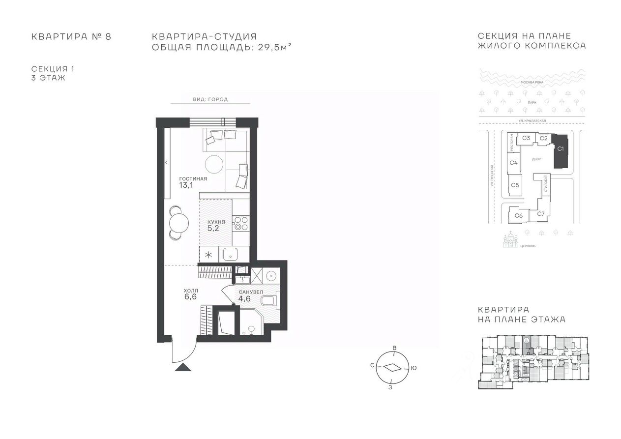 Успейте стать частью уникального проекта премиум-класса на западе Москвы! В продаже квартиры: 1-комнатные от 28,1 м²; 2-комнатные от 61,2 м²; 3-комнатные от 86,6 м²; 4-комнатные от 110,7 м². Первый взнос от 30%! Рассрочка на 2 года без переплат! Крылатское 33 это премиальный жилой комплекс от специализированного застройщика ООО "Сияние". Самый высокий небоскрёб в районе, достигающий отметки в 150 метров и малоэтажный клубный формат высотой от 42 метров на приватной территории площадью 1,4 га. Великолепные виды на излучину Москва-реки, Живописный мост и урбанистический облик города. Эксклюзивные форматы квартир с панорамным остеклением и патио-террасами. Двухуровневый паркинг на 271м/м, премиальные входные группы, ресторан высокой кухни, детский сад и эко-маркет на территории комплекса. Эксклюзивные преимущества: доступ к wellness-центру, коворкингу и клубной гостиной только для резидентов. Над проектом работали именитые российские архитектурные бюро: архитектор проекта бюро "Остоженка", планировочные решения от бюро Александры Федоровой. Расположение Пешком: 5-7 минут - до парка Звезд, Крылатского парка и набережной Москвы-реки; 15 минут - до метро Крылатское Арбатско-Покровской линии; 15 минут - до пристани Крылатская. На автомобиле: 10 минут - до Третьего транспортного кольца; 15 минут - до Садового кольца и Москва- Сити; 20-30 минут - до Аэропорта Внуково; 30-40 минут - до Аэропорта Шереметьево. В 300 метрах от комплекса - удобная транспортная развязка с проспектом Маршала Жукова, обеспечивающая легкий доступ к ключевым магистралям. Благоустройство: Просторная общественная гостиная; Коворкинг с кофе-баром, комфортные переговорные зоны с быстрым wi-fi, зарядными устройствами и библиотекой; Пространство friends lab для организации клубных мероприятий; Wellness-центр с фитнес-залом и массажными кабинетами; Ресторан высокой кухни; Частный детский сад; Детское кафе; Современный детский playhub; Спортивные площадки; Гипоаллергенный сад, безопасные водные пространства, декоративные пруды и сухие фонтаны; Высокоскоростные бесшумные лифты; Разделение зон для резидентов квартала и сервисного обслуживания. Окружение: - парки: Крылатские холмы, природно-исторический парк Москворецкий, Серебряный Бор; - учебные заведения: 5 образовательных комплексов, в которые входят 15 детских садов и 12 школьных корпусов. В удобной транспортной доступности гимназия им. Е. М. Примакова и международный лицей The International School of Moscow; - уникальные спортивные сооружения: гребной канал "Крылатское", легендарный велотрек "Крылатское", "Лата Трэк" для горнолыжников и сноубордистов, ледовый дворец "Крылатское"; - единственный в Москве парк развлечений под открытым небом, включающий более 70 вариантов досуга для любого возраста и времени года. Срок сдачи проекта: 2 квартал 2027 года. Финансирование и эскроу-счет обеспечены банком МКБ.