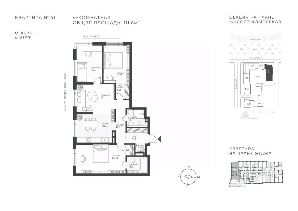 Успейте стать частью уникального проекта премиум-класса на западе Москвы! В продаже квартиры: 1-комнатные от 28,1 м²; 2-комнатные от 61,2 м²; 3-комнатные от 86,6 м²; 4-комнатные от 110,7 м². Первый взнос от 30%! Рассрочка на 2 года без переплат! Крылатское 33 это премиальный жилой комплекс от специализированного застройщика ООО "Сияние". Самый высокий небоскрёб в районе, достигающий отметки в 150 метров и малоэтажный клубный формат высотой от 42 метров на приватной территории площадью 1,4 га. Великолепные виды на излучину Москва-реки, Живописный мост и урбанистический облик города. Эксклюзивные форматы квартир с панорамным остеклением и патио-террасами. Двухуровневый паркинг на 271м/м, премиальные входные группы, ресторан высокой кухни, детский сад и эко-маркет на территории комплекса. Эксклюзивные преимущества: доступ к wellness-центру, коворкингу и клубной гостиной только для резидентов. Над проектом работали именитые российские архитектурные бюро: архитектор проекта бюро "Остоженка", планировочные решения от бюро Александры Федоровой. Расположение Пешком: 5-7 минут - до парка Звезд, Крылатского парка и набережной Москвы-реки; 15 минут - до метро Крылатское Арбатско-Покровской линии; 15 минут - до пристани Крылатская. На автомобиле: 10 минут - до Третьего транспортного кольца; 15 минут - до Садового кольца и Москва- Сити; 20-30 минут - до Аэропорта Внуково; 30-40 минут - до Аэропорта Шереметьево. В 300 метрах от комплекса - удобная транспортная развязка с проспектом Маршала Жукова, обеспечивающая легкий доступ к ключевым магистралям. Благоустройство: Просторная общественная гостиная; Коворкинг с кофе-баром, комфортные переговорные зоны с быстрым wi-fi, зарядными устройствами и библиотекой; Пространство friends lab для организации клубных мероприятий; Wellness-центр с фитнес-залом и массажными кабинетами; Ресторан высокой кухни; Частный детский сад; Детское кафе; Современный детский playhub; Спортивные площадки; Гипоаллергенный сад, безопасные водные пространства, декоративные пруды и сухие фонтаны; Высокоскоростные бесшумные лифты; Разделение зон для резидентов квартала и сервисного обслуживания. Окружение: - парки: Крылатские холмы, природно-исторический парк Москворецкий, Серебряный Бор; - учебные заведения: 5 образовательных комплексов, в которые входят 15 детских садов и 12 школьных корпусов. В удобной транспортной доступности гимназия им. Е. М. Примакова и международный лицей The International School of Moscow; - уникальные спортивные сооружения: гребной канал "Крылатское", легендарный велотрек "Крылатское", "Лата Трэк" для горнолыжников и сноубордистов, ледовый дворец "Крылатское"; - единственный в Москве парк развлечений под открытым небом, включающий более 70 вариантов досуга для любого возраста и времени года. Срок сдачи проекта: 2 квартал 2027 года. Финансирование и эскроу-счет обеспечены банком МКБ.