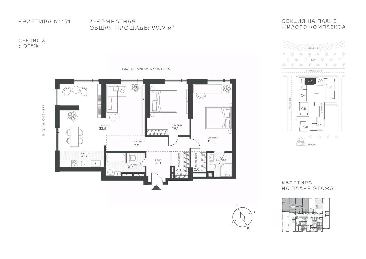 Успейте стать частью уникального проекта премиум-класса на западе Москвы! В продаже квартиры: 1-комнатные от 28,1 м²; 2-комнатные от 61,2 м²; 3-комнатные от 86,6 м²; 4-комнатные от 110,7 м². Первый взнос от 30%! Рассрочка на 2 года без переплат! Крылатское 33 это премиальный жилой комплекс от специализированного застройщика ООО "Сияние". Самый высокий небоскрёб в районе, достигающий отметки в 150 метров и малоэтажный клубный формат высотой от 42 метров на приватной территории площадью 1,4 га. Великолепные виды на излучину Москва-реки, Живописный мост и урбанистический облик города. Эксклюзивные форматы квартир с панорамным остеклением и патио-террасами. Двухуровневый паркинг на 271м/м, премиальные входные группы, ресторан высокой кухни, детский сад и эко-маркет на территории комплекса. Эксклюзивные преимущества: доступ к wellness-центру, коворкингу и клубной гостиной только для резидентов. Над проектом работали именитые российские архитектурные бюро: архитектор проекта бюро "Остоженка", планировочные решения от бюро Александры Федоровой. Расположение Пешком: 5-7 минут - до парка Звезд, Крылатского парка и набережной Москвы-реки; 15 минут - до метро Крылатское Арбатско-Покровской линии; 15 минут - до пристани Крылатская. На автомобиле: 10 минут - до Третьего транспортного кольца; 15 минут - до Садового кольца и Москва- Сити; 20-30 минут - до Аэропорта Внуково; 30-40 минут - до Аэропорта Шереметьево. В 300 метрах от комплекса - удобная транспортная развязка с проспектом Маршала Жукова, обеспечивающая легкий доступ к ключевым магистралям. Благоустройство: Просторная общественная гостиная; Коворкинг с кофе-баром, комфортные переговорные зоны с быстрым wi-fi, зарядными устройствами и библиотекой; Пространство friends lab для организации клубных мероприятий; Wellness-центр с фитнес-залом и массажными кабинетами; Ресторан высокой кухни; Частный детский сад; Детское кафе; Современный детский playhub; Спортивные площадки; Гипоаллергенный сад, безопасные водные пространства, декоративные пруды и сухие фонтаны; Высокоскоростные бесшумные лифты; Разделение зон для резидентов квартала и сервисного обслуживания. Окружение: - парки: Крылатские холмы, природно-исторический парк Москворецкий, Серебряный Бор; - учебные заведения: 5 образовательных комплексов, в которые входят 15 детских садов и 12 школьных корпусов. В удобной транспортной доступности гимназия им. Е. М. Примакова и международный лицей The International School of Moscow; - уникальные спортивные сооружения: гребной канал "Крылатское", легендарный велотрек "Крылатское", "Лата Трэк" для горнолыжников и сноубордистов, ледовый дворец "Крылатское"; - единственный в Москве парк развлечений под открытым небом, включающий более 70 вариантов досуга для любого возраста и времени года. Срок сдачи проекта: 2 квартал 2027 года. Финансирование и эскроу-счет обеспечены банком МКБ.