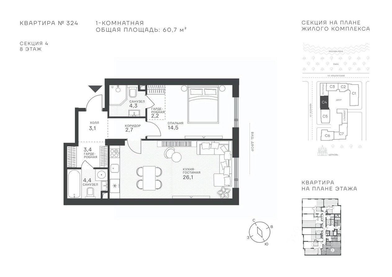 Успейте стать частью уникального проекта премиум-класса на западе Москвы! В продаже квартиры: 1-комнатные от 28,1 м²; 2-комнатные от 61,2 м²; 3-комнатные от 86,6 м²; 4-комнатные от 110,7 м². Первый взнос от 30%! Рассрочка на 2 года без переплат! Крылатское 33 это премиальный жилой комплекс от специализированного застройщика ООО "Сияние". Самый высокий небоскрёб в районе, достигающий отметки в 150 метров и малоэтажный клубный формат высотой от 42 метров на приватной территории площадью 1,4 га. Великолепные виды на излучину Москва-реки, Живописный мост и урбанистический облик города. Эксклюзивные форматы квартир с панорамным остеклением и патио-террасами. Двухуровневый паркинг на 271м/м, премиальные входные группы, ресторан высокой кухни, детский сад и эко-маркет на территории комплекса. Эксклюзивные преимущества: доступ к wellness-центру, коворкингу и клубной гостиной только для резидентов. Над проектом работали именитые российские архитектурные бюро: архитектор проекта бюро "Остоженка", планировочные решения от бюро Александры Федоровой. Расположение Пешком: 5-7 минут - до парка Звезд, Крылатского парка и набережной Москвы-реки; 15 минут - до метро Крылатское Арбатско-Покровской линии; 15 минут - до пристани Крылатская. На автомобиле: 10 минут - до Третьего транспортного кольца; 15 минут - до Садового кольца и Москва- Сити; 20-30 минут - до Аэропорта Внуково; 30-40 минут - до Аэропорта Шереметьево. В 300 метрах от комплекса - удобная транспортная развязка с проспектом Маршала Жукова, обеспечивающая легкий доступ к ключевым магистралям. Благоустройство: Просторная общественная гостиная; Коворкинг с кофе-баром, комфортные переговорные зоны с быстрым wi-fi, зарядными устройствами и библиотекой; Пространство friends lab для организации клубных мероприятий; Wellness-центр с фитнес-залом и массажными кабинетами; Ресторан высокой кухни; Частный детский сад; Детское кафе; Современный детский playhub; Спортивные площадки; Гипоаллергенный сад, безопасные водные пространства, декоративные пруды и сухие фонтаны; Высокоскоростные бесшумные лифты; Разделение зон для резидентов квартала и сервисного обслуживания. Окружение: - парки: Крылатские холмы, природно-исторический парк Москворецкий, Серебряный Бор; - учебные заведения: 5 образовательных комплексов, в которые входят 15 детских садов и 12 школьных корпусов. В удобной транспортной доступности гимназия им. Е. М. Примакова и международный лицей The International School of Moscow; - уникальные спортивные сооружения: гребной канал "Крылатское", легендарный велотрек "Крылатское", "Лата Трэк" для горнолыжников и сноубордистов, ледовый дворец "Крылатское"; - единственный в Москве парк развлечений под открытым небом, включающий более 70 вариантов досуга для любого возраста и времени года. Срок сдачи проекта: 2 квартал 2027 года. Финансирование и эскроу-счет обеспечены банком МКБ.