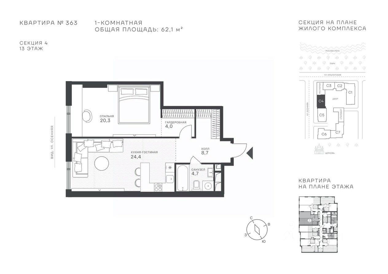 Успейте стать частью уникального проекта премиум-класса на западе Москвы! В продаже квартиры: 1-комнатные от 28,1 м²; 2-комнатные от 61,2 м²; 3-комнатные от 86,6 м²; 4-комнатные от 110,7 м². Первый взнос от 30%! Рассрочка на 2 года без переплат! Крылатское 33 это премиальный жилой комплекс от специализированного застройщика ООО "Сияние". Самый высокий небоскрёб в районе, достигающий отметки в 150 метров и малоэтажный клубный формат высотой от 42 метров на приватной территории площадью 1,4 га. Великолепные виды на излучину Москва-реки, Живописный мост и урбанистический облик города. Эксклюзивные форматы квартир с панорамным остеклением и патио-террасами. Двухуровневый паркинг на 271м/м, премиальные входные группы, ресторан высокой кухни, детский сад и эко-маркет на территории комплекса. Эксклюзивные преимущества: доступ к wellness-центру, коворкингу и клубной гостиной только для резидентов. Над проектом работали именитые российские архитектурные бюро: архитектор проекта бюро "Остоженка", планировочные решения от бюро Александры Федоровой. Расположение Пешком: 5-7 минут - до парка Звезд, Крылатского парка и набережной Москвы-реки; 15 минут - до метро Крылатское Арбатско-Покровской линии; 15 минут - до пристани Крылатская. На автомобиле: 10 минут - до Третьего транспортного кольца; 15 минут - до Садового кольца и Москва- Сити; 20-30 минут - до Аэропорта Внуково; 30-40 минут - до Аэропорта Шереметьево. В 300 метрах от комплекса - удобная транспортная развязка с проспектом Маршала Жукова, обеспечивающая легкий доступ к ключевым магистралям. Благоустройство: Просторная общественная гостиная; Коворкинг с кофе-баром, комфортные переговорные зоны с быстрым wi-fi, зарядными устройствами и библиотекой; Пространство friends lab для организации клубных мероприятий; Wellness-центр с фитнес-залом и массажными кабинетами; Ресторан высокой кухни; Частный детский сад; Детское кафе; Современный детский playhub; Спортивные площадки; Гипоаллергенный сад, безопасные водные пространства, декоративные пруды и сухие фонтаны; Высокоскоростные бесшумные лифты; Разделение зон для резидентов квартала и сервисного обслуживания. Окружение: - парки: Крылатские холмы, природно-исторический парк Москворецкий, Серебряный Бор; - учебные заведения: 5 образовательных комплексов, в которые входят 15 детских садов и 12 школьных корпусов. В удобной транспортной доступности гимназия им. Е. М. Примакова и международный лицей The International School of Moscow; - уникальные спортивные сооружения: гребной канал "Крылатское", легендарный велотрек "Крылатское", "Лата Трэк" для горнолыжников и сноубордистов, ледовый дворец "Крылатское"; - единственный в Москве парк развлечений под открытым небом, включающий более 70 вариантов досуга для любого возраста и времени года. Срок сдачи проекта: 2 квартал 2027 года. Финансирование и эскроу-счет обеспечены банком МКБ.