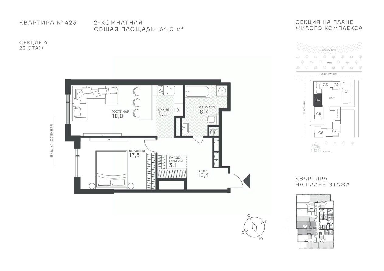 Успейте стать частью уникального проекта премиум-класса на западе Москвы! В продаже квартиры: 1-комнатные от 28,1 м²; 2-комнатные от 61,2 м²; 3-комнатные от 86,6 м²; 4-комнатные от 110,7 м². Первый взнос от 30%! Рассрочка на 2 года без переплат! Крылатское 33 это премиальный жилой комплекс от специализированного застройщика ООО "Сияние". Самый высокий небоскрёб в районе, достигающий отметки в 150 метров и малоэтажный клубный формат высотой от 42 метров на приватной территории площадью 1,4 га. Великолепные виды на излучину Москва-реки, Живописный мост и урбанистический облик города. Эксклюзивные форматы квартир с панорамным остеклением и патио-террасами. Двухуровневый паркинг на 271м/м, премиальные входные группы, ресторан высокой кухни, детский сад и эко-маркет на территории комплекса. Эксклюзивные преимущества: доступ к wellness-центру, коворкингу и клубной гостиной только для резидентов. Над проектом работали именитые российские архитектурные бюро: архитектор проекта бюро "Остоженка", планировочные решения от бюро Александры Федоровой. Расположение Пешком: 5-7 минут - до парка Звезд, Крылатского парка и набережной Москвы-реки; 15 минут - до метро Крылатское Арбатско-Покровской линии; 15 минут - до пристани Крылатская. На автомобиле: 10 минут - до Третьего транспортного кольца; 15 минут - до Садового кольца и Москва- Сити; 20-30 минут - до Аэропорта Внуково; 30-40 минут - до Аэропорта Шереметьево. В 300 метрах от комплекса - удобная транспортная развязка с проспектом Маршала Жукова, обеспечивающая легкий доступ к ключевым магистралям. Благоустройство: Просторная общественная гостиная; Коворкинг с кофе-баром, комфортные переговорные зоны с быстрым wi-fi, зарядными устройствами и библиотекой; Пространство friends lab для организации клубных мероприятий; Wellness-центр с фитнес-залом и массажными кабинетами; Ресторан высокой кухни; Частный детский сад; Детское кафе; Современный детский playhub; Спортивные площадки; Гипоаллергенный сад, безопасные водные пространства, декоративные пруды и сухие фонтаны; Высокоскоростные бесшумные лифты; Разделение зон для резидентов квартала и сервисного обслуживания. Окружение: - парки: Крылатские холмы, природно-исторический парк Москворецкий, Серебряный Бор; - учебные заведения: 5 образовательных комплексов, в которые входят 15 детских садов и 12 школьных корпусов. В удобной транспортной доступности гимназия им. Е. М. Примакова и международный лицей The International School of Moscow; - уникальные спортивные сооружения: гребной канал "Крылатское", легендарный велотрек "Крылатское", "Лата Трэк" для горнолыжников и сноубордистов, ледовый дворец "Крылатское"; - единственный в Москве парк развлечений под открытым небом, включающий более 70 вариантов досуга для любого возраста и времени года. Срок сдачи проекта: 2 квартал 2027 года. Финансирование и эскроу-счет обеспечены банком МКБ.