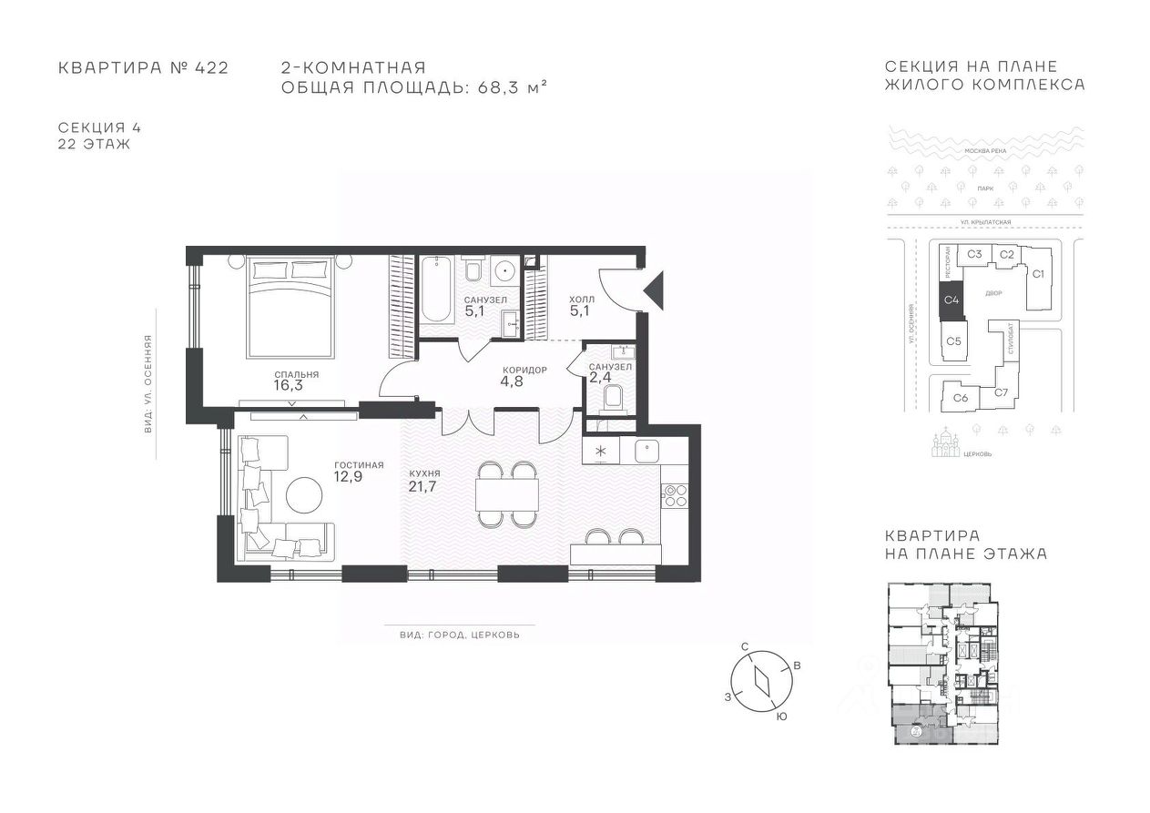 Общая площадь68,3 м²