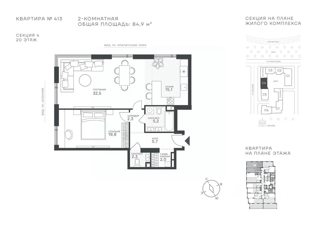 Успейте стать частью уникального проекта премиум-класса на западе Москвы! В продаже квартиры: 1-комнатные от 28,1 м²; 2-комнатные от 61,2 м²; 3-комнатные от 86,6 м²; 4-комнатные от 110,7 м². Первый взнос от 30%! Рассрочка на 2 года без переплат! Крылатское 33 это премиальный жилой комплекс от специализированного застройщика ООО "Сияние". Самый высокий небоскрёб в районе, достигающий отметки в 150 метров и малоэтажный клубный формат высотой от 42 метров на приватной территории площадью 1,4 га. Великолепные виды на излучину Москва-реки, Живописный мост и урбанистический облик города. Эксклюзивные форматы квартир с панорамным остеклением и патио-террасами. Двухуровневый паркинг на 271м/м, премиальные входные группы, ресторан высокой кухни, детский сад и эко-маркет на территории комплекса. Эксклюзивные преимущества: доступ к wellness-центру, коворкингу и клубной гостиной только для резидентов. Над проектом работали именитые российские архитектурные бюро: архитектор проекта бюро "Остоженка", планировочные решения от бюро Александры Федоровой. Расположение Пешком: 5-7 минут - до парка Звезд, Крылатского парка и набережной Москвы-реки; 15 минут - до метро Крылатское Арбатско-Покровской линии; 15 минут - до пристани Крылатская. На автомобиле: 10 минут - до Третьего транспортного кольца; 15 минут - до Садового кольца и Москва- Сити; 20-30 минут - до Аэропорта Внуково; 30-40 минут - до Аэропорта Шереметьево. В 300 метрах от комплекса - удобная транспортная развязка с проспектом Маршала Жукова, обеспечивающая легкий доступ к ключевым магистралям. Благоустройство: Просторная общественная гостиная; Коворкинг с кофе-баром, комфортные переговорные зоны с быстрым wi-fi, зарядными устройствами и библиотекой; Пространство friends lab для организации клубных мероприятий; Wellness-центр с фитнес-залом и массажными кабинетами; Ресторан высокой кухни; Частный детский сад; Детское кафе; Современный детский playhub; Спортивные площадки; Гипоаллергенный сад, безопасные водные пространства, декоративные пруды и сухие фонтаны; Высокоскоростные бесшумные лифты; Разделение зон для резидентов квартала и сервисного обслуживания. Окружение: - парки: Крылатские холмы, природно-исторический парк Москворецкий, Серебряный Бор; - учебные заведения: 5 образовательных комплексов, в которые входят 15 детских садов и 12 школьных корпусов. В удобной транспортной доступности гимназия им. Е. М. Примакова и международный лицей The International School of Moscow; - уникальные спортивные сооружения: гребной канал "Крылатское", легендарный велотрек "Крылатское", "Лата Трэк" для горнолыжников и сноубордистов, ледовый дворец "Крылатское"; - единственный в Москве парк развлечений под открытым небом, включающий более 70 вариантов досуга для любого возраста и времени года. Срок сдачи проекта: 2 квартал 2027 года. Финансирование и эскроу-счет обеспечены банком МКБ.