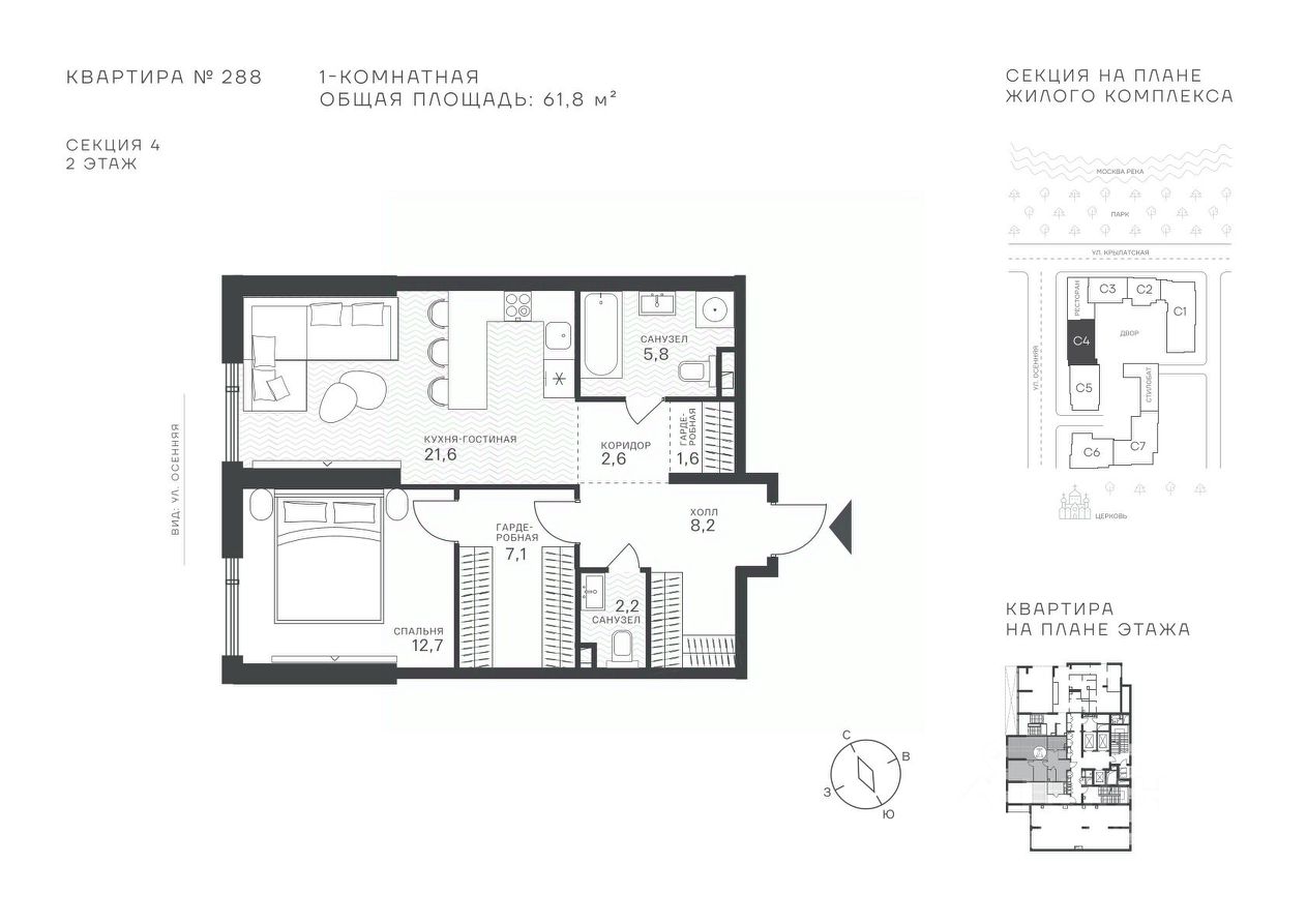 Общая площадь61,8 м²