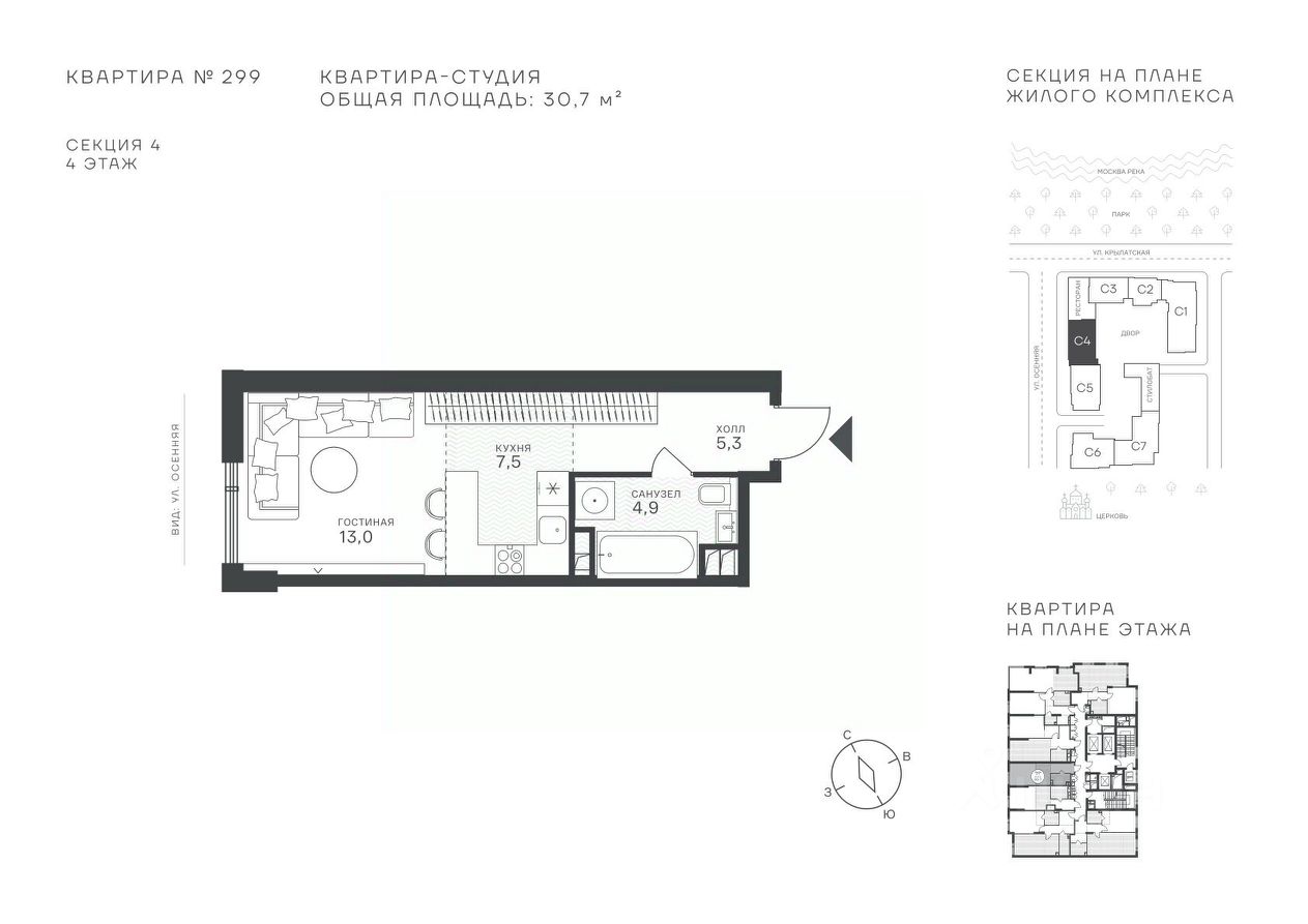 Общая площадь30,7 м²
