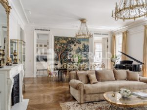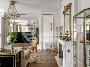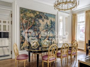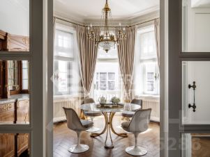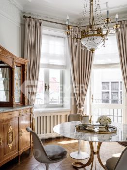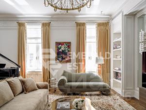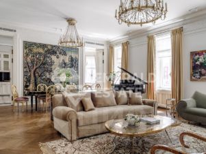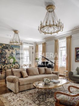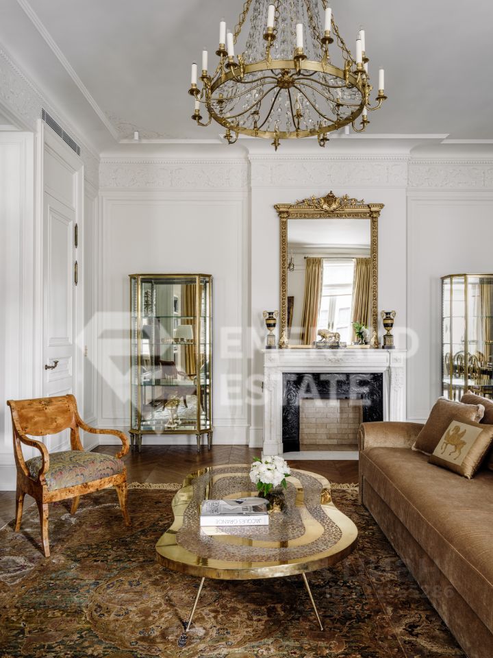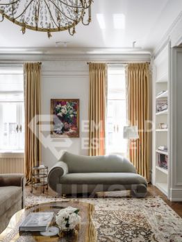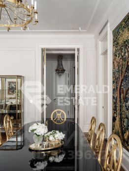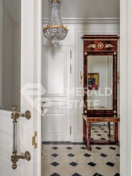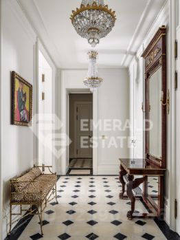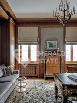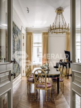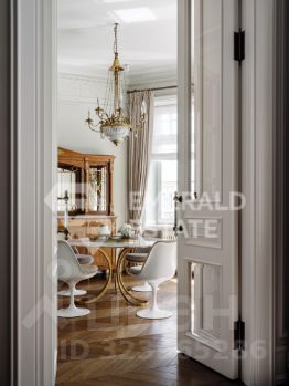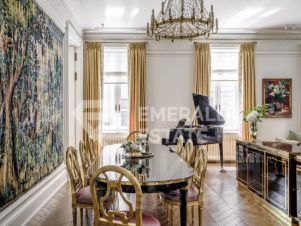 Редкая историческая резиденция в доме с характером и легендой. Представляю вашему вниманию просторный объект коллекционного уровня, расположенный на пятом этаже знаменитого городского особняка конца XIX века. Дом с историей, которую невозможно повторить Этот дом был возведён в 18991902 годах для одного из крупнейших страховых обществ того времени. Архитектор Николай Проскурнин создал не просто доходный дом — а настоящую архитектурную поэму. Фасад оформлен в выразительной эклектике: — редкие барельефы с мифологическими существами, — символика, спрятанная в деталях, — авторские кованые элементы по эскизам Оттон фон Дессина. Закрытый внутренний дворик позволяет с лёгкостью припарковать автомобиль. На нижних этажах — уютные рестораны, галереи, концептуальные магазины и рабочие пространства. В парадных — внимательная консьерж-служба. Локация, которая говорит сама за себя Жить здесь — значит быть в центре культурной и интеллектуальной жизни Москвы. В пешем доступе: • школы и детские сады, • продуктовые магазины и аптеки, • музеи и небольшие арт-пространства, Пространство резиденции идеально выстроено для баланса приватности и открытости: — торжественная прихожая задаёт настроение интерьеру, — светлая гостиная с обеденной зоной хранит атмосферу старинного камина XIX века и живой звук рояля, — парадная кухня со столовой и полукруглым эркерным окном открывает выход на просторный балкон. Приватная часть: — основная спальня с собственной ванной комнатой и вместительной гардеробной, — дополнительная спальня с отдельным санузлом, — кабинет-библиотека для работы, творчества и тишины, — гостевой санузел, — продуманные вспомогательные помещения: постирочная, хозяйственные кладовые, гардеробные. Интерьер — гармония эпох и безупречного вкуса Дизайн выполнен в стилистике французской классики, но с авторскими нюансами, создающими ощущение европейского парадного дома. — антикварные элементы и винтаж, — художественная лепнина, — мягкая палитра благородных оттенков, — в каждой комнате — золотые акценты, добавляющие тепла и статуса. Основа выполнена из долговечных натуральных материалов: мозаичная плитка (Crema Marfil + Bianco Carrara + Nero Marquina), паркет французская ёлка. Установлена приточно-вытяжная вентиляция с увлажнением. Высокие потолки и крупные окна наполняют квартиру светом и воздухом. Если вы хотите увидеть больше, получить расширенную презентацию или назначить просмотр — напишите. Проведу индивидуальную экскурсию и покажу, почему этот объект — настоящая редкость на рынке. EMERALD ESTATE является участником ассоциации агентств элитной недвижимости AREA, что гарантирует высокий уровень сервиса и профессионализма.