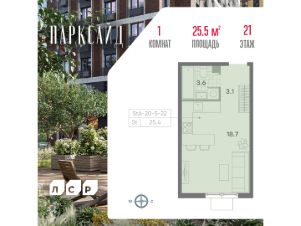 Продаётся квартира-студия общей площадью 25.5 кв. метров на 21 этаже жилого квартала Парксайд. Возводится в районе Чертаново Центральное Южного административного округа Москвы. В 2 км от будущего комплекса находится станция метро "Пражская". Для автомобилистов есть удобные выезды на Варшавское шоссе и Чертановскую улицу.