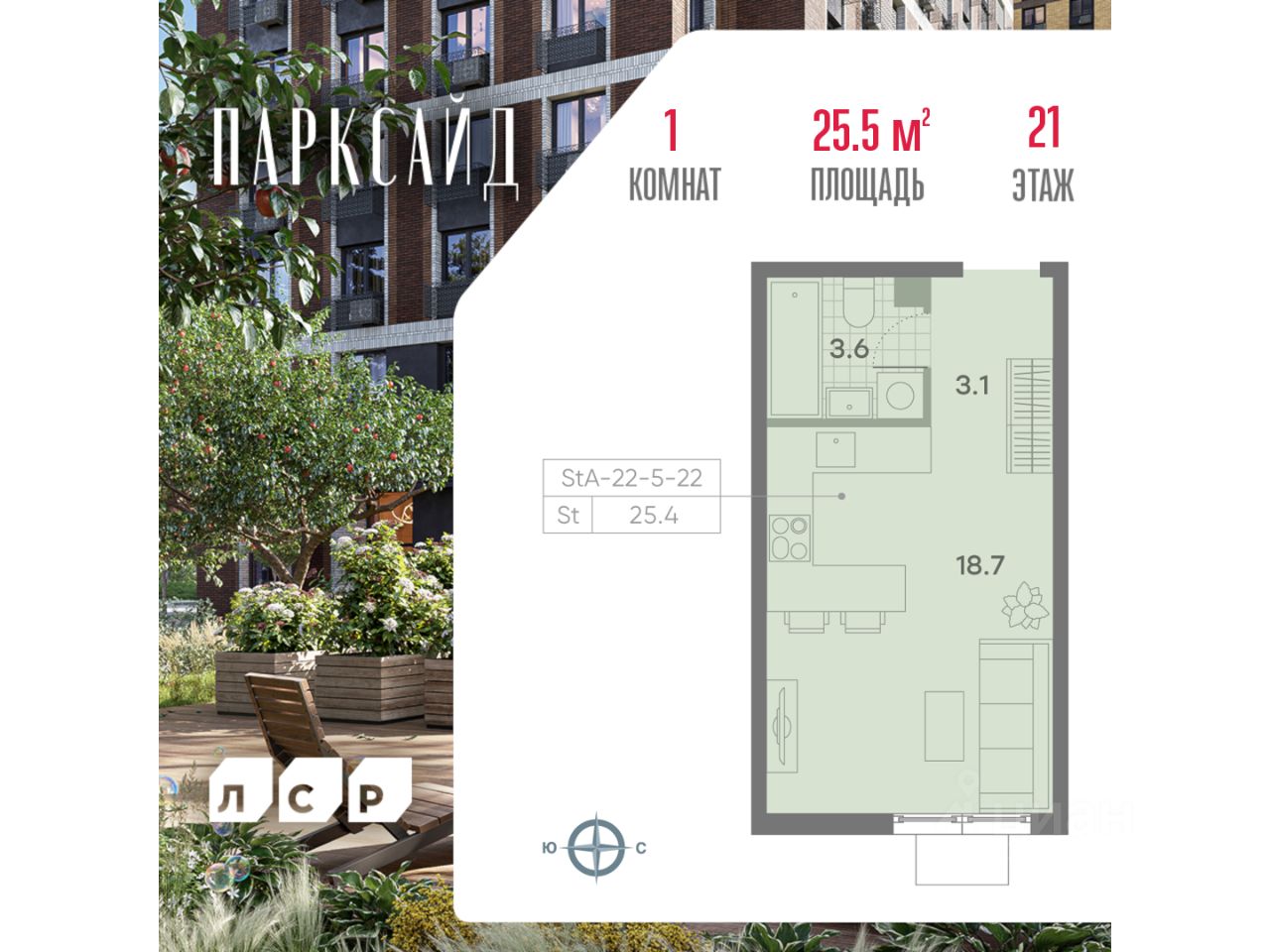 Продаётся квартира-студия общей площадью 25.5 кв. метров на 21 этаже жилого квартала Парксайд. Возводится в районе Чертаново Центральное Южного административного округа Москвы. В 2 км от будущего комплекса находится станция метро "Пражская". Для автомобилистов есть удобные выезды на Варшавское шоссе и Чертановскую улицу.