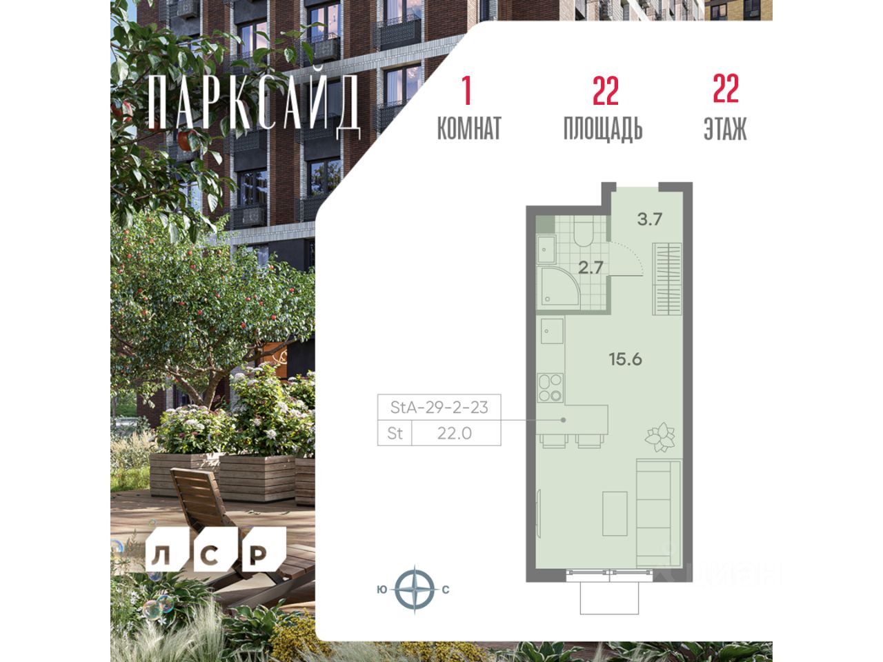 Продаётся квартира-студия общей площадью 22 кв. метров на 22 этаже жилого квартала Парксайд. Возводится в районе Чертаново Центральное Южного административного округа Москвы. В 2 км от будущего комплекса находится станция метро "Пражская". Для автомобилистов есть удобные выезды на Варшавское шоссе и Чертановскую улицу.