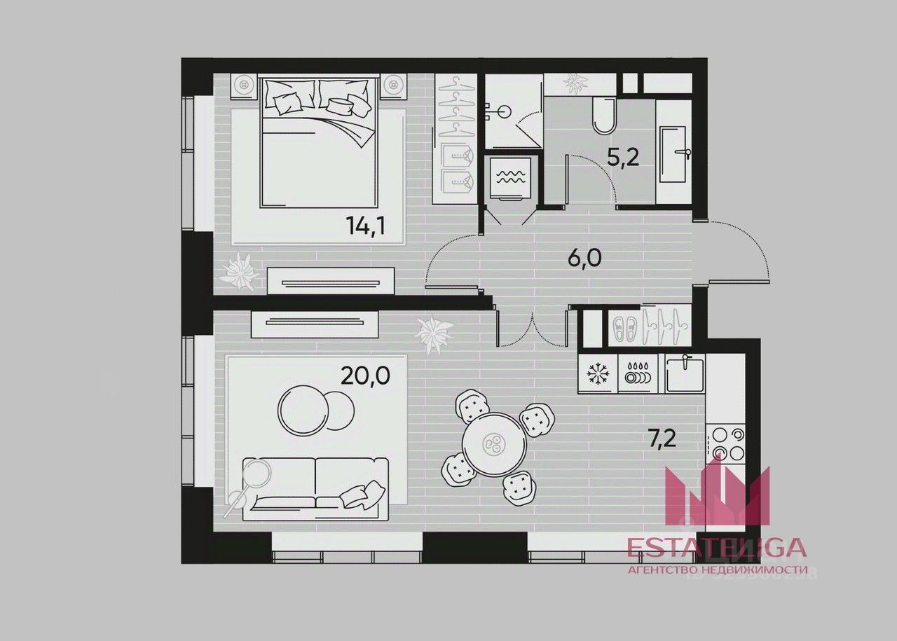 - Просторная кухня-гостиная (27,2 м²) идеально подходит для отдыха и встреч с друзьями.