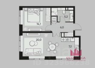 Id 58268. Продается просторная 2-комнатная (евро) квартира в жилом комплексе PRIDE