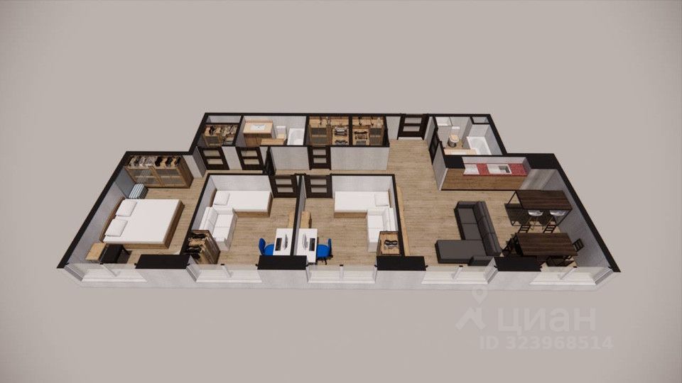 Общая площадь квартиры составляет 86,2 кв.м. Функциональное планировочное решение: 1. Кухня-гостиная 22 кв.м; 2. Мастер -спальня 16 кв.м со своей ванной комнатой и гардеробной.; 3. Вторая спальня 10 кв.м; 4. Третья спальня 10 кв.м; 5. Гостевой санузел; 6. Гардеробная; 7. Постирочная; 8. Холл 12 кв.м. Высокие потолки 3,3 м и панорамные окна наполнят ваш дом воздухом и светом! Это редкая квартира с 5 окнами!