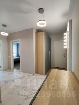 Одна комната 18,2 кв.м, вторая 20,3 кв.м, довольно просторная кухня 10,5 кв.м. В квартире 2 санузла, один совмещен с ванной комнатой. Вся сантехника в отличном состоянии. Тёплые полы на кухне и в санузлах, в каждой комнате кондиционер.