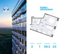 Продаётся 1-комнатная квартира площадью 39.3 м² на 23 этаже в Жилом Комплексе "Родина Переделкино".