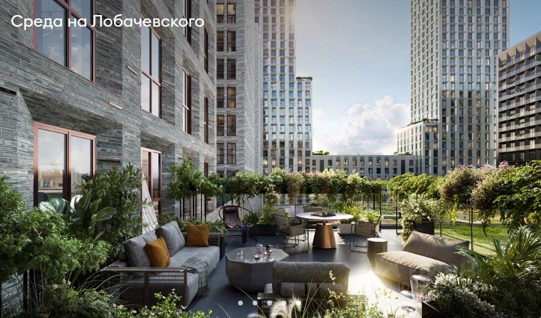 Особенности: В ландшафтном парке Среды на Лобачевского расположены крытые зоны для спокойного времяпровождения, места для активного отдыха и спорта, коворкинг, соседский комьюнити-центр, водные объекты, ландшафтный парк во дворе, водный сад с зонами отдыха, зоны коворкинга, дизайнерские гранд-лобби, бесключевой доступ, подземный паркинг.