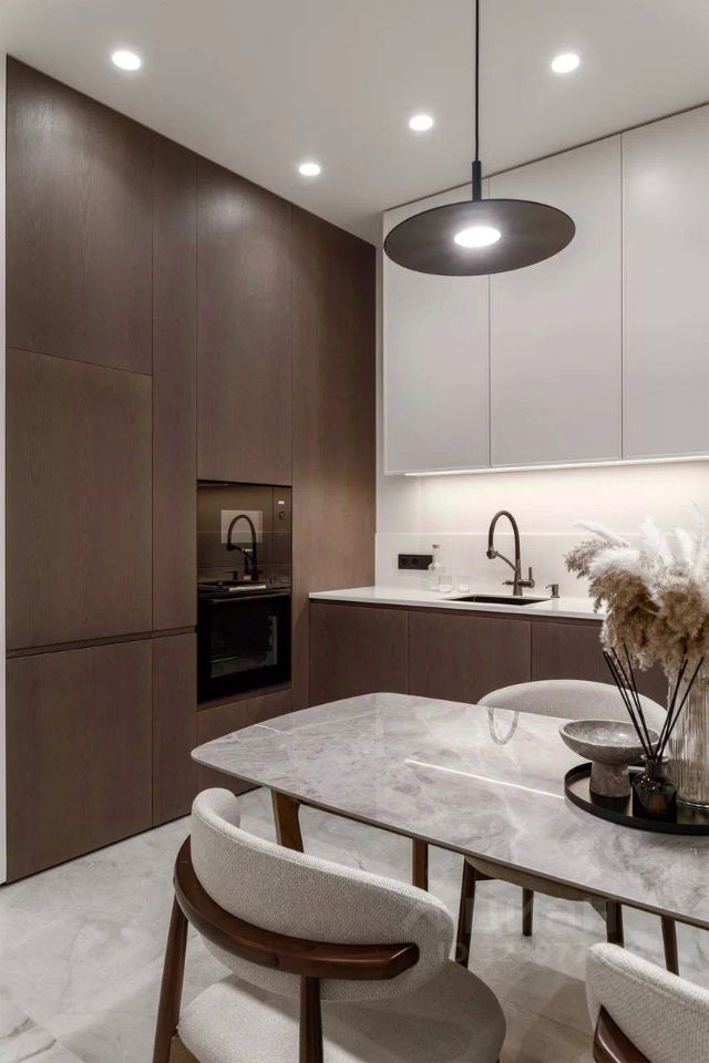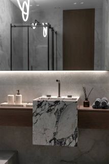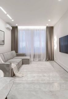 В квартире выполнен роскошный дизайнерский ремонт, много натурального дерева и камня. Трендовая мебель, модные закругления и освещение не оставит Вас равнодушными.