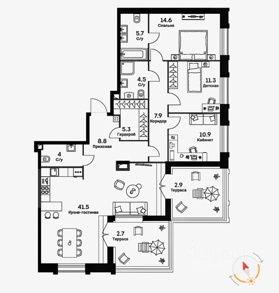 Общая площадь 120.1 кв.м., Корпус 1, Секция 1, Этаж 26 из 27, ИДН 262, Потолки 4 м., Панорамный вид на Москву реку. Две террасы. Площадь кухни-гостиной 41.5 кв.м., срок сдачи 3 квартал 2026 года.