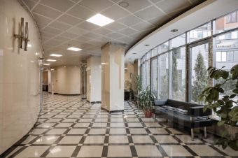Презентабельная входная группа. В холле первого этажа расположены ресторан, магазин, химчистка.