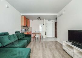 В квартире сделан современный евроремонт. Здесь есть все необходимое для комфортного проживания: просторная кухня, светлая гостиная и уютная спальня. Санузел раздельный, с качественной сантехникой. Окна выходят на улицу, поэтому в квартире всегда светло и уютно. Высота потолков составляет 2,62 метра, что добавляет дополнительное ощущение простора.