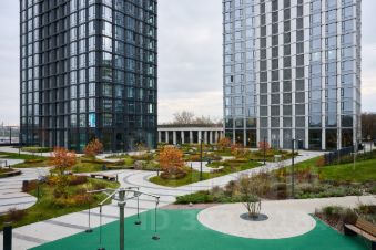 Hide - комплекс из 3-х небоскребов расположен в долине реки Сетунь, вблизи природного заказника, живописных набережных и Воробьевых гор (10 мин пешком до Воробьевской набережной).