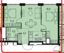 Площадь квартиры: 56,4 кв.м, БЕЗ ОТДЕЛКИ!
