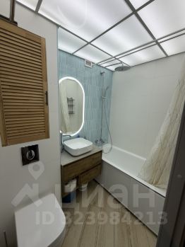 Совмещенный санузел с полноценной ванной, красивая дизайнерская плитка, светящийся потолок и очень качественная сантехника grohe с тропическим душем.